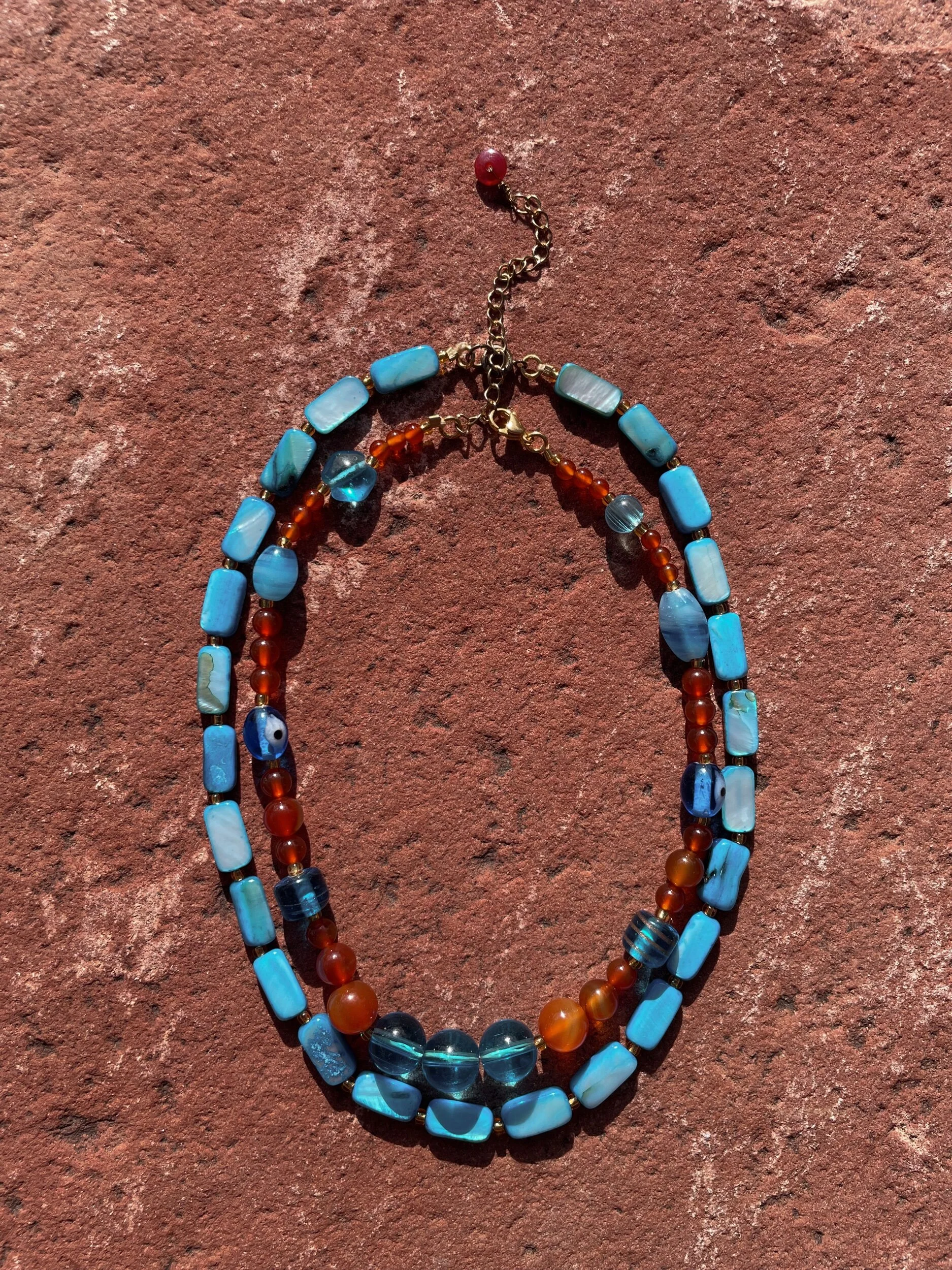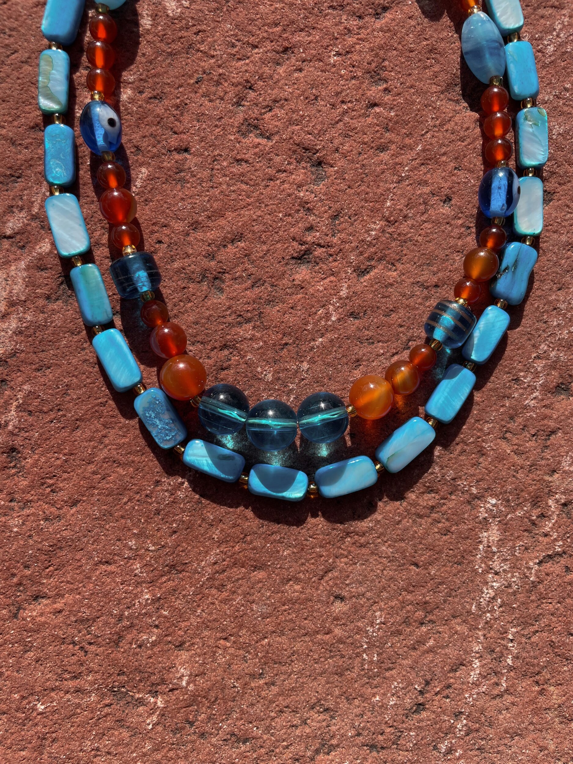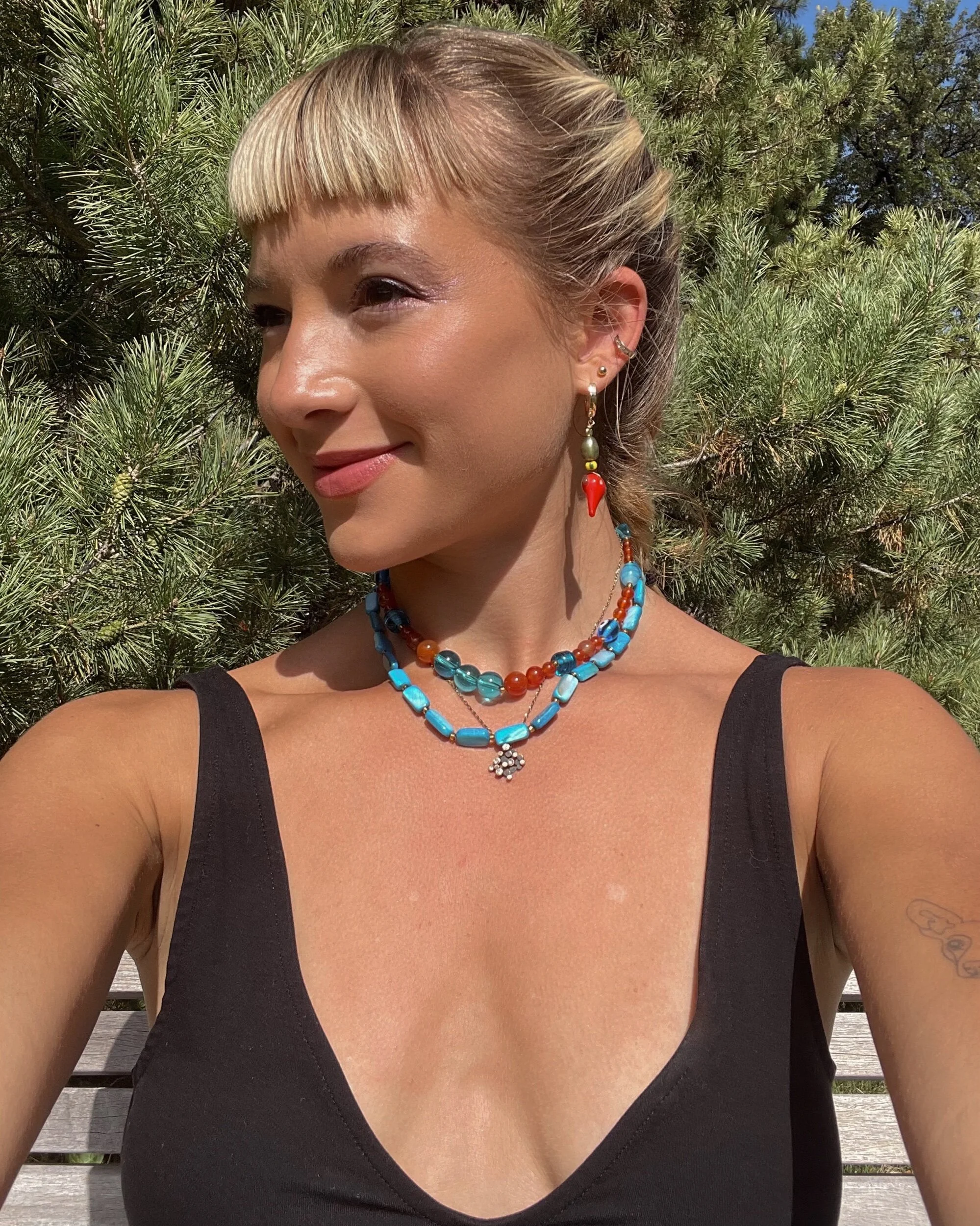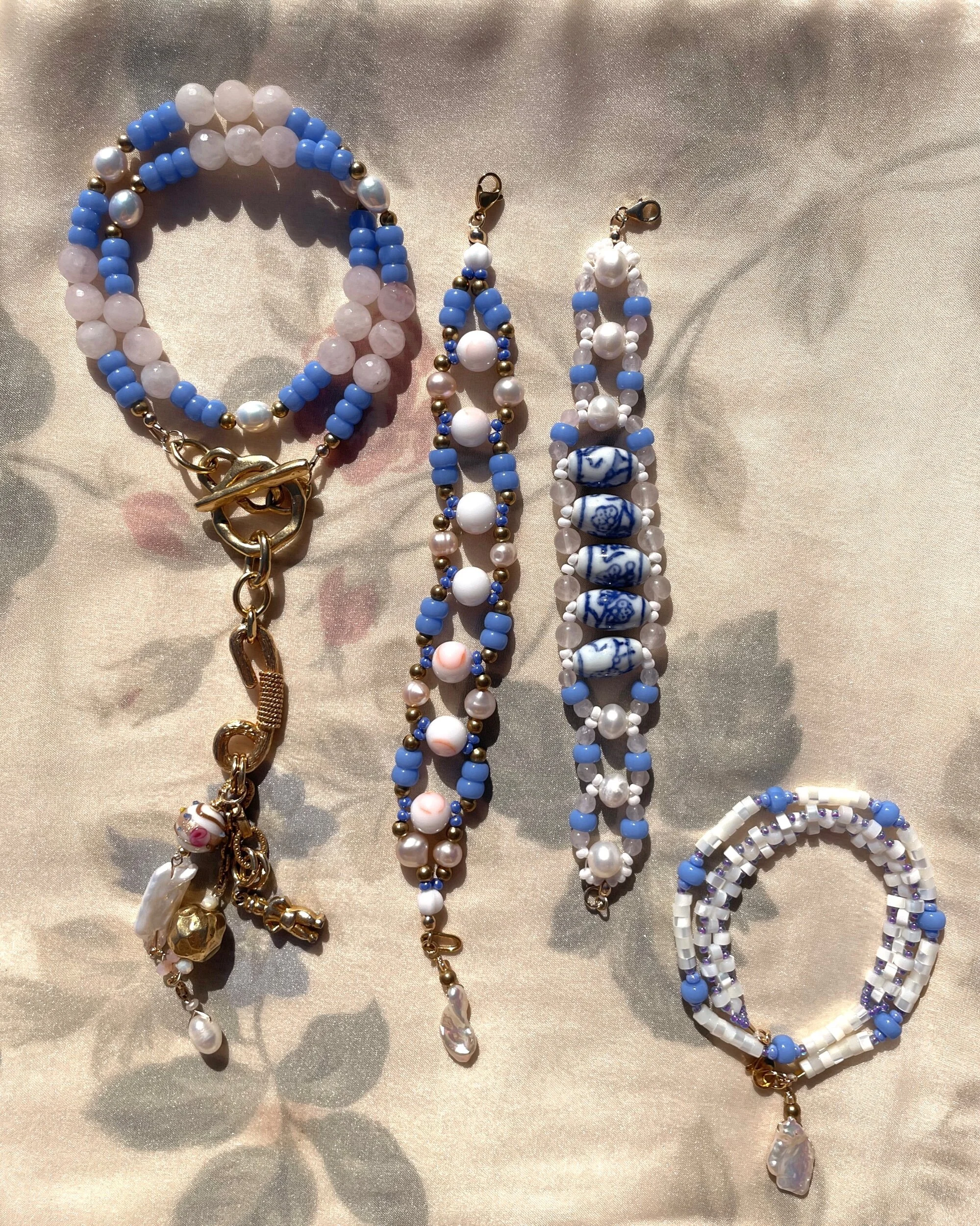 This powerful healing necklace features rose quartz gemstone beads, AAA pink freshwater pearls, and vintage floral glass beads hand-sourced in New Orleans, LA (2023), finished with a gold-filled front-facing hook clasp and AAA baroque freshwater pearl droplet and milagro charm.
