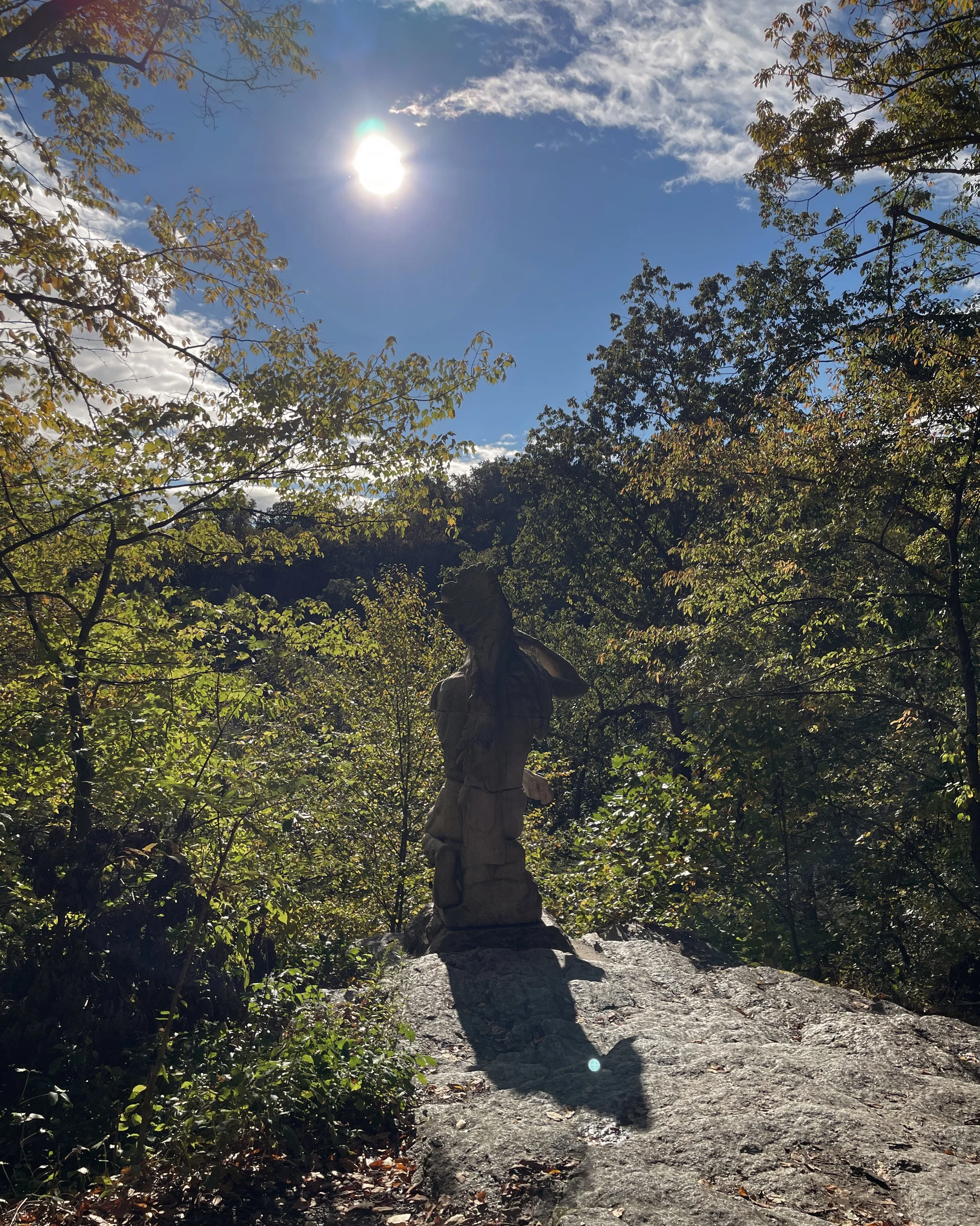 When I decided I was going to move to Colorado, one of the last (but very important) things I did before I left my hometown was to visit the impressive marble statue of the Native American Tedyuscung that is perched high up among the trees. According to the Friends of the Wissahickon, Tedyuscung was not a chief by lineage, but was a prominent spokesman who lived in the 18th century and was involved with negotiations between the French to the west, the Iroquois to the north, and the Quakers and Anglicans in Philadelphia. At one point Tedyuscung declared himself the king of 10 nations, which were the six nations of the Iroquois, three Lenape tribes and a related Algonquian tribe.